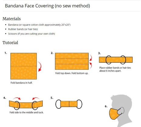 Centers for Disease Control and Prevention (CDC) har enkla guider för att tillverka egen ansiktsmask av en T-shirt eller bandana på sin webbsida.