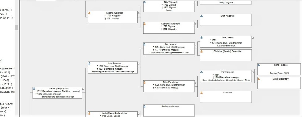 Tack snälla. Jag brukar bygga släktträden i min dator och det finns flera olika program som är bra om man vill göra så. Jag använder Min släkt sedan många herrans år 🙂