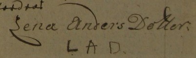 Lena Andersdotter var troligen inte skrivkunnig men kunde signera makens bouppteckning med sina initialer. (Almunge 1759)