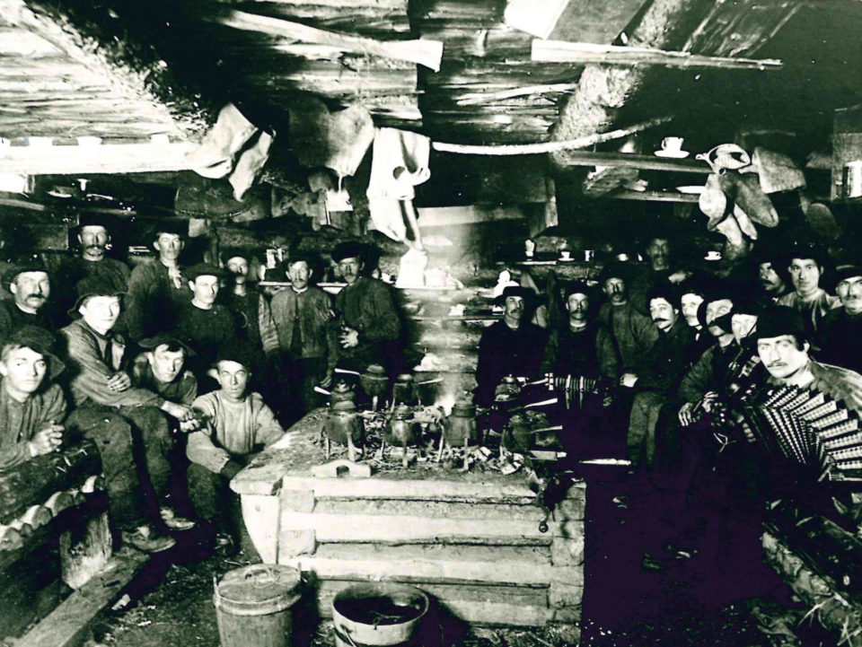 Skogsarbetare i sin koja. Foto: Skogsmuseet i Lyckseles fotosamling