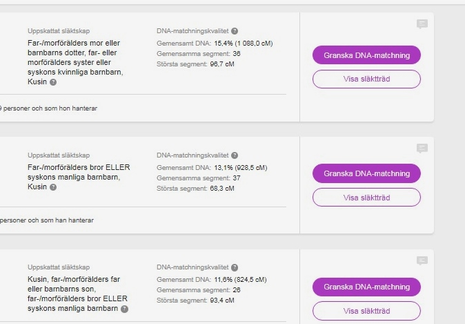 Älskade mamma gick bort i januari 2024 men då jag förvaltar hennes DNA-test hade jag möjlighet att uppdatera testet till ”mtDNA Full Sequence”, där man får veta mer om de små ”grenar” och ”utskott” man tillhör på världens stora DNA-träd. Nu vet jag att vi tillhör den mitrokondriella haplogrupp som kallas U5a1b6.
