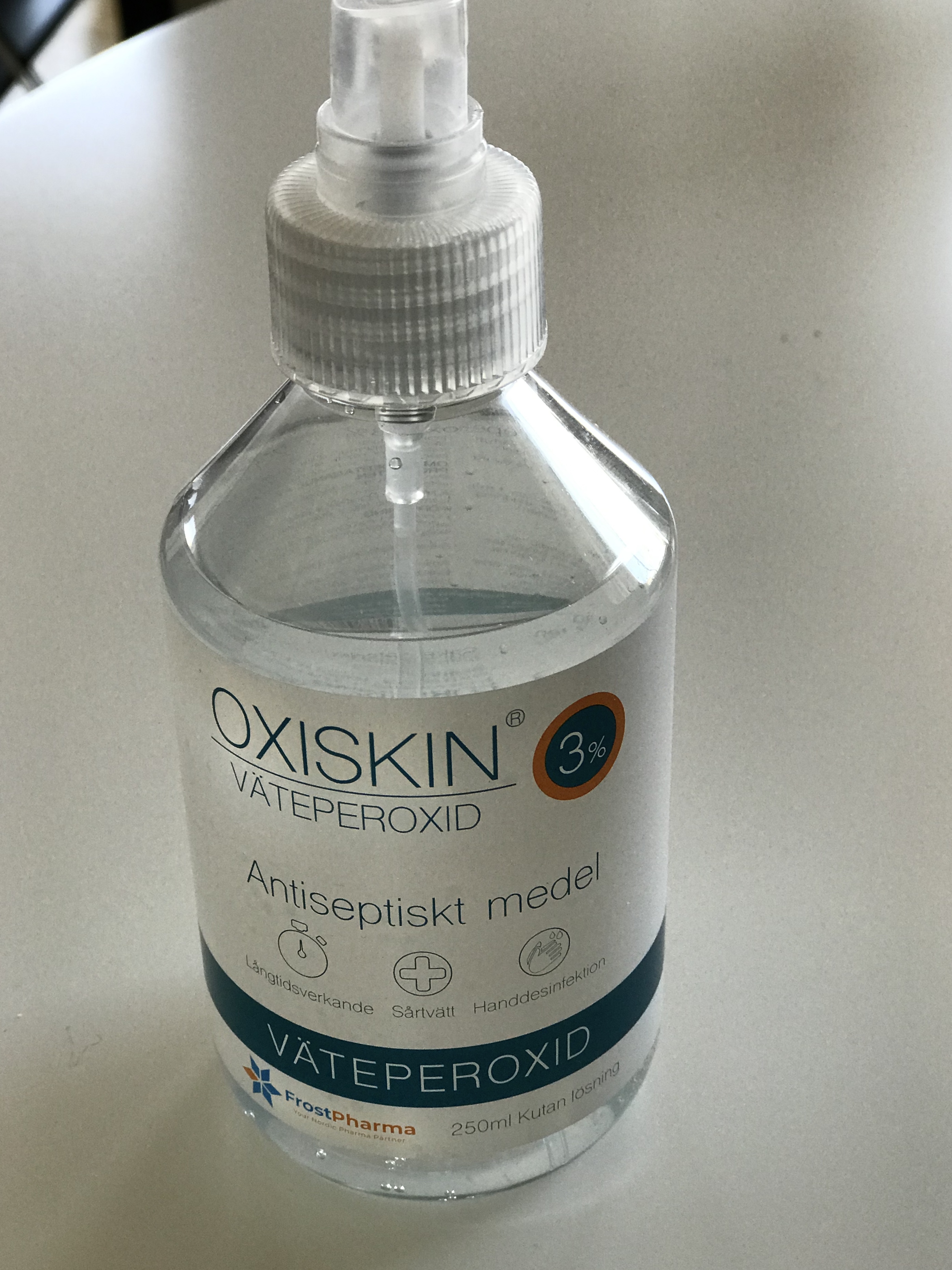 Väteperoxid kan även användas till ytdesinfektion och rengöring i hemmet. En kork väteperoxid i en hink med 3 liter vatten gör hemmet rent och fräscht. Kan användas i koncentrerad form på smutsiga ytor, som diskbänk, badrum etc. men kontrollera först att ytorna verkligen tål medlet då det har en blekande förmåga. Används även utspädd för att rengöra livsmedel som frukt och grönsaker. Väteperoxid kan bland annat beställas hos företaget