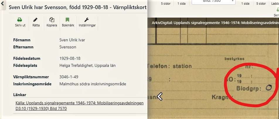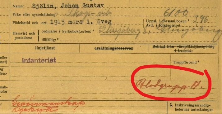 Stamkorten kan berätta mer Värnpliktskort (stamkort) finns på Arkiv Digital för alla män som mönstrade inom militären åren 1902-1950. På värnpliktskorten finns ofta, förutom namn, adress, längd och uppgifter om tjänstgöring och utbildningar även uppgift om personens blodgrupp.