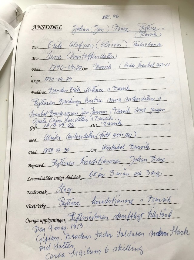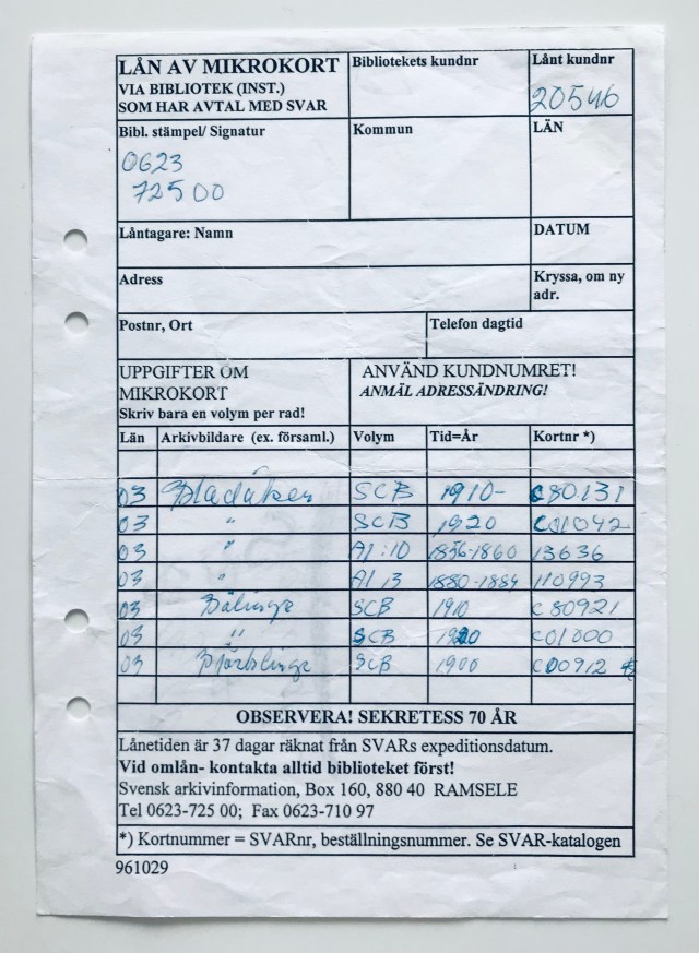 När jag började släktforska på 1990-talet blev jag varnad av en erfaren forskare. När man väl har börjat med det här så är det nästan omöjligt att sluta, sa han. Med facit i hand ångrar jag ibland att jag inte lyssnade på varningen 🙂