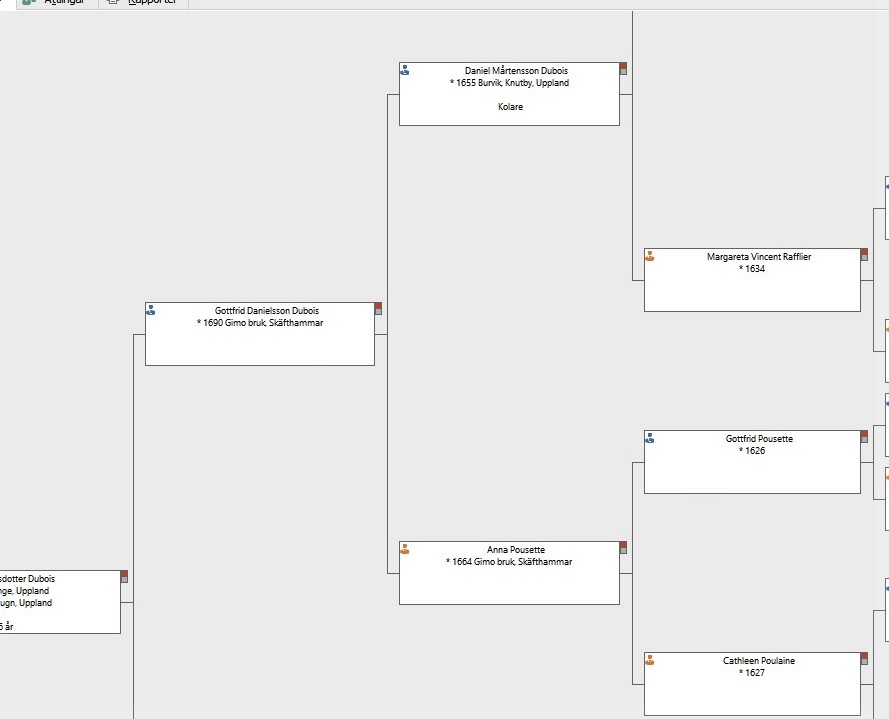 Som många andra hörde jag som barn rykten om att vi hade valloner i släkten. När jag som 20-åring började släktforska, var jag fast besluten att hitta dem. Jag trodde då att det skulle bli enkelt, men det visade sig ganska snabbt att min morfars vallon-förfäder inte alls fanns på så nära håll i släkten som jag hade trott. Det krävdes många år av forskande innan jag hade lyckats ”gräva” mig tillbaka till vallonsläkterna Pousette, Dubois, Vincent m.fl.