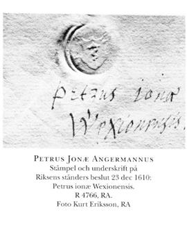 Petrus Jonæ Angermannus Anfadern Petrus Jonæ Angermannus föddes i Lunne, Arnäs i Ångermanland år 1559 och kom att bli biskop i Växjö stift. När pesten drabbade delar av stiftet åren 1601 – 1602 bestämde han sig för att skriva en liten en bok med goda råd för att ”motverka farsotens spridning”. Boken innehåller även diverse råd och anvisningar från det ”andliga apoteket”. Petrus skrev några år senare ”Örtebok eller örtekrans til almogins nyta” som utgavs år 1628 där han ”helsar then Christelige Lesaren venligen Gudi och alt godt tillönskar.”
