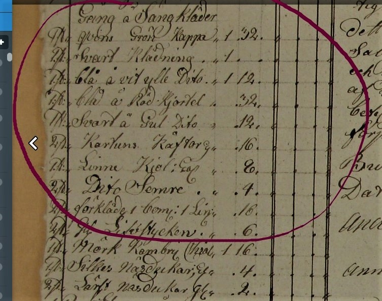 I Elisabeths bouppteckning kan man läsa att hon förutom diverse kläder ägde en sotpanna (kaffepanna), en spinnrock, ett par ljusstakar, ett bord och lite porslin.