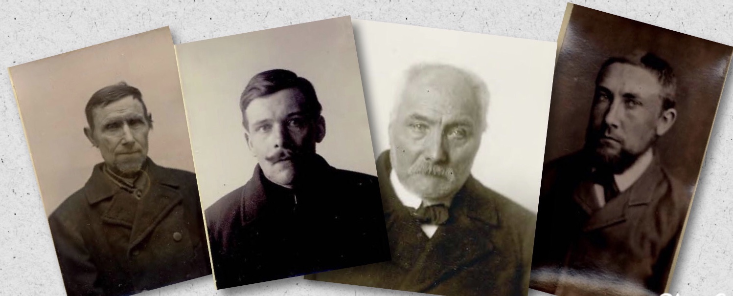 I Riksarkivets digitala arkiv finns bilder på frigivna straffarbetsfångar samt information om de brott som begåtts, samt vilket straff personen dömdes till. Här finns även information om speciella kännetecken, som tatueringar, ärr och annat. Obs! ”Gubarna” på bilden är inte mina släktingar 🙂