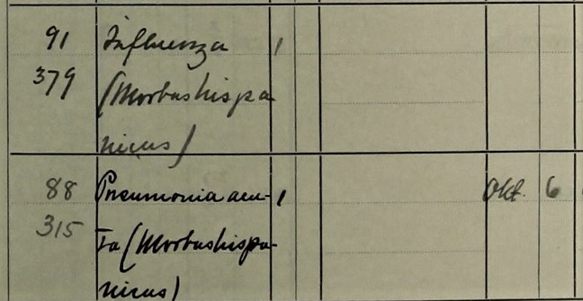 Influenza morbus hispanicus och lunginflammation var den vanligaste dödsorsaken på Frösö sinnesjukhus 1918.
