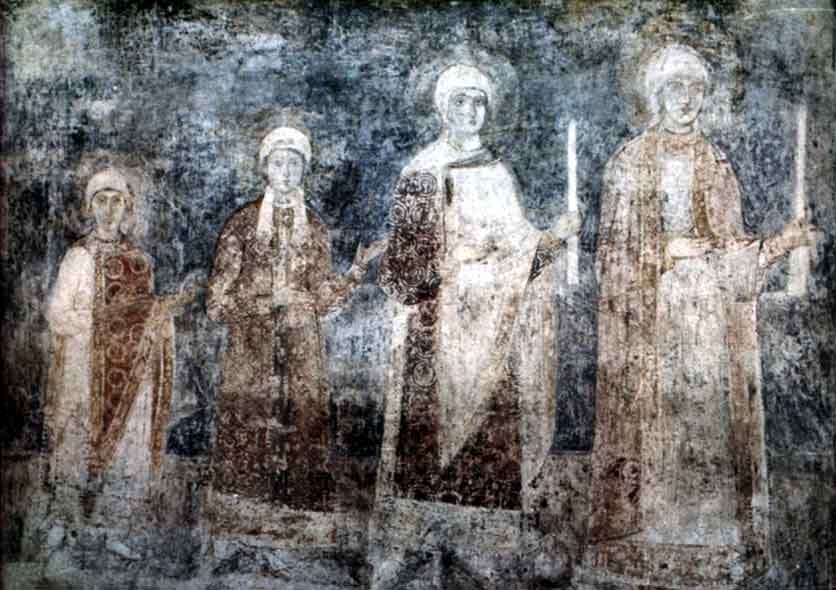Kalkmålning från 1000-talet som föreställer Ingegerds och Jaroslavs döttrar