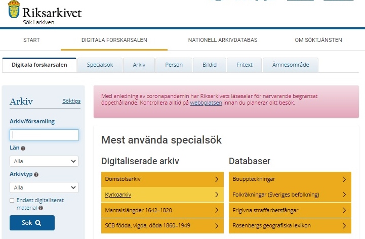 Du vet väl att du kan forska gratis i Riksarkivets digitala forskarsal på internet?