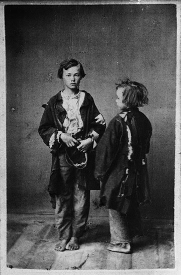 Två barn från Trasskolan 1870, ett skolhem för fattiga barn och vanartade pojkar. Foto: Alfred Jansson/Nordiska museet