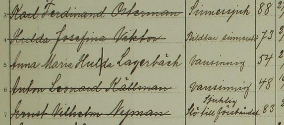 Stockholm är en stor stad med många församlingar och det är oerhört svårt när man söker efter personer där uppgift om födelseår och/eller födelseförsamling saknas. För att försöka hitta dessa uppgifter har jag sökt efter pojkarna längre fram i tiden men har inte lyckats hitta dem någonstans. Hur det gick för Abraham Sjöberg, Anders Östberg, Gustaf Martin Maron och Gustaf Österberg sedan de kommit till Hälsingland förblir därför en gåta. Jag vet är att Abraham Sjöberg föddes utom äktenskapet cirka 1776 i Stockholm. Han var son till änkan och bryggeriarbetaren Anna Christina Lundin och bodde hos sin mamma som nyfödd.