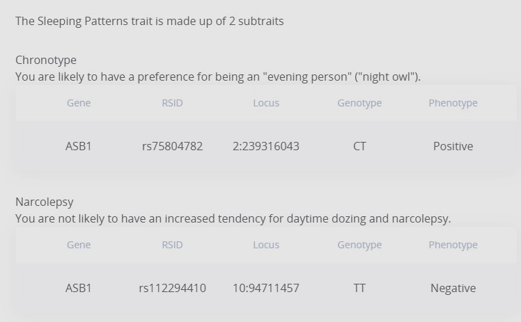 De där neandertalarna verkar ha varit energiska små ”knippen” på sin tid. Tack vare mitt Neandertal-DNA är jag pigg som en mört, dygnet runt. I alla fall om man ska tro på DNA-resultatet. Jag är tydligen en nattuggla som aldrig tar tupplurar på dagtid. Någon tendens för att utveckla den neurologiska sjukdomen Narkolepsi tycks jag inte ha, tack och lov.