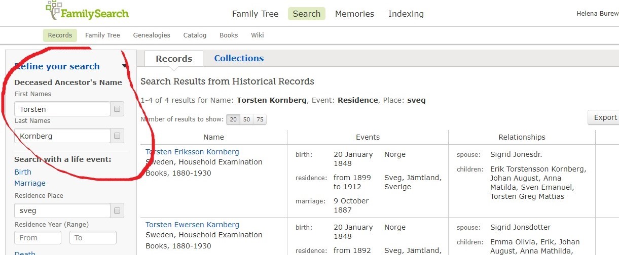 Genom Family Search kan du söka dina förfäder i många olika länder. Du kan välja att söka efter förnamn/efternamn, födelseort och land.