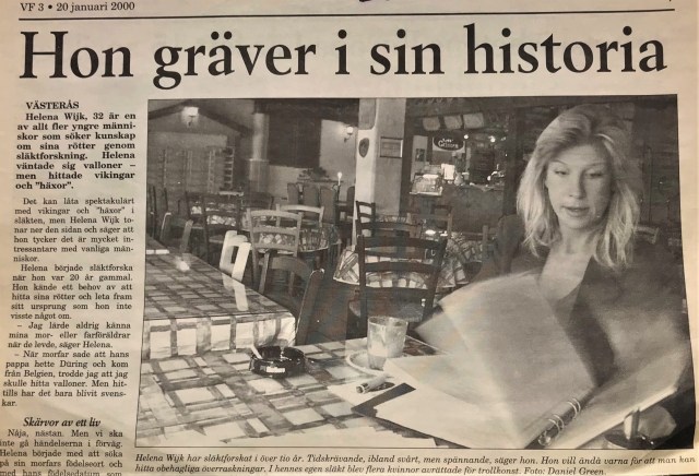 På min pappas sida är jag ättling till Agnis i Ström, ”Remsarna” och gamle Härjulf Hornbrytare. På min mammas sida är jag ättling till en kvinna som för cirka 50 000 år sedan lämnade sin boplats i södra Asien och påbörjade en vandring till våra nordliga trakter. Hennes ättlingar kom sedermera till en liten sjö intill Motala ström i Östergötland, där man livnärde sig som jägare och fiskare för cirka 10 000 år sedan.