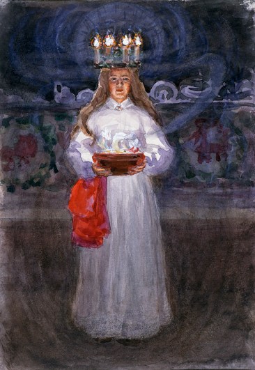 I alla tider har vi människor här i Norden försökt att uthärda och blidka mörkret och varje år vid den här tiden ser vi fram emot att snart få fira ljusets återkomst. Långt innan det moderna luciafirandet kom till oss var natten till den 13:e december en mycket speciell och farlig natt. Enligt den julianska kalendern, som vi följde under medeltiden, räknades just lucianatten som årets allra längsta och den föreställningen levde kvar länge i vårt land – långt efter att den julianska kalendern byttes mot den nuvarande, gregorianska och vintersolståndet flyttades fram någon vecka.